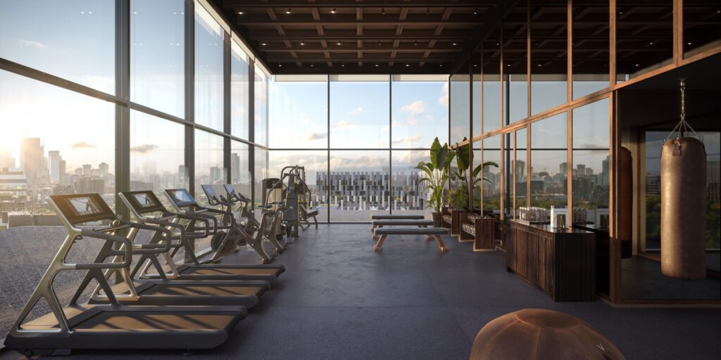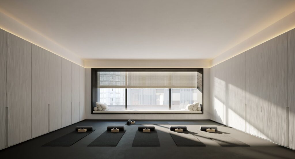 Wrapped in panoramic views of downtown and boasting a double-height ceiling to maximize natural light, the fitness room is designed to help you find your strength. The dynamic city backdrop motivates you as you push your limits with a wide variety of equipment. Surpass personal goals, then centre yourself as you admire the view. This is where endurance finds inspiration.